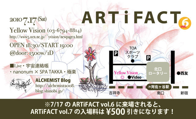 次回ARTiFACT vol.8は10月9日に阿佐ヶ谷Yellow Visionです。