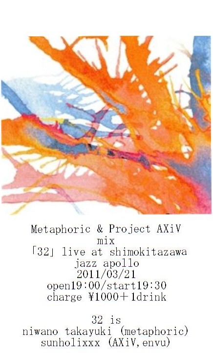 metaphoric庭野さんとのmetaphoric派生アンビエント系ギター&ベースデュオw「32」で参加します。